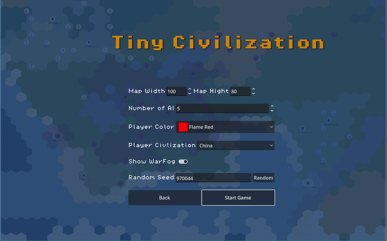 - Customize each run: map size, random seed, civ choice, and banner color.